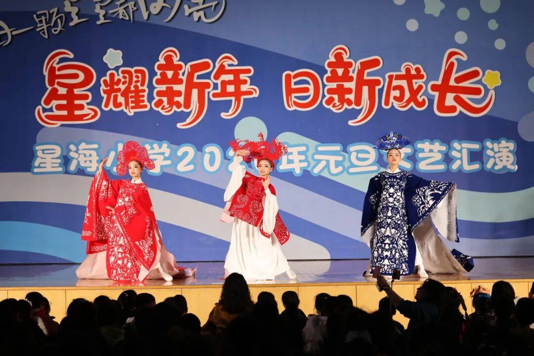 宁海县星海小学除夕文艺汇演出色纷呈,讲义剧《司马光砸缸》、群舞《长安三万里》、合唱《稻喷鼻》轮流上演。做为汇演的亮点节目,创意剪纸服拆秀《纸韵花开》更是一登场便冷艳全场。