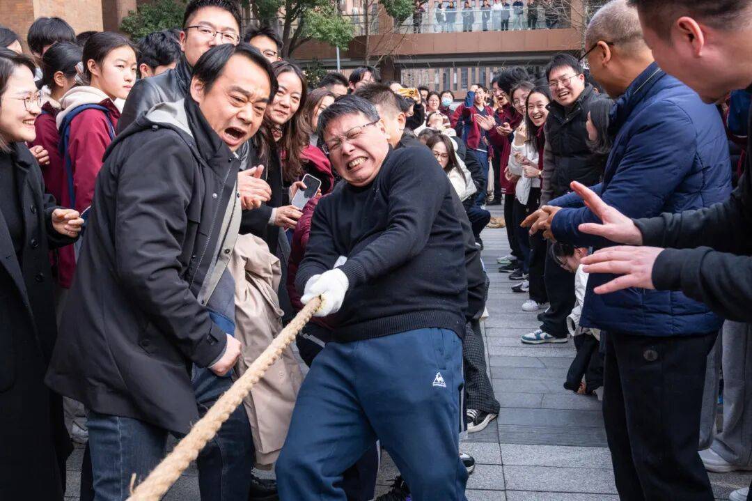 宁波市鄞州中学举行“送新聚力”教师拔河角逐。赛场上,教员们紧握长绳,场边学生们呐喊帮威,这场力量取连合的比拼凝结了全校师生驱逐新年的配合。