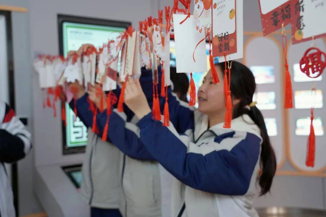 宁波高新区尝试学校以“五福送新,成长随行”为从题,为学生们预备了寄意吉利、别具匠心的新年礼品——印有学校校名的“福”字中国结挂饰,将新年的祝愿提前送到孩子们手中。